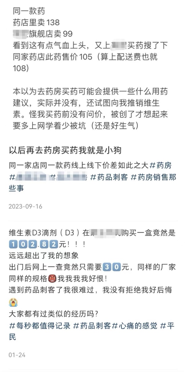有消费者在社交平台感慨遭遇药品价差“刺客”