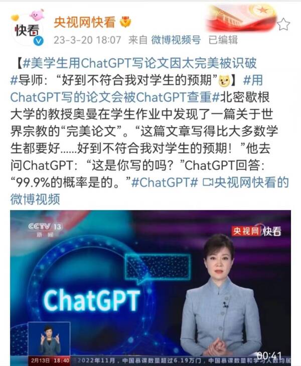 2月9日,《每日经济新闻》刊发的独家报道——《调查|国内高校已有学生用ChatGPT写论文,“杰作”快赶上老师了!“AI作弊”怎么防?》在微博上引起了网友的普遍关注和热烈讨论。