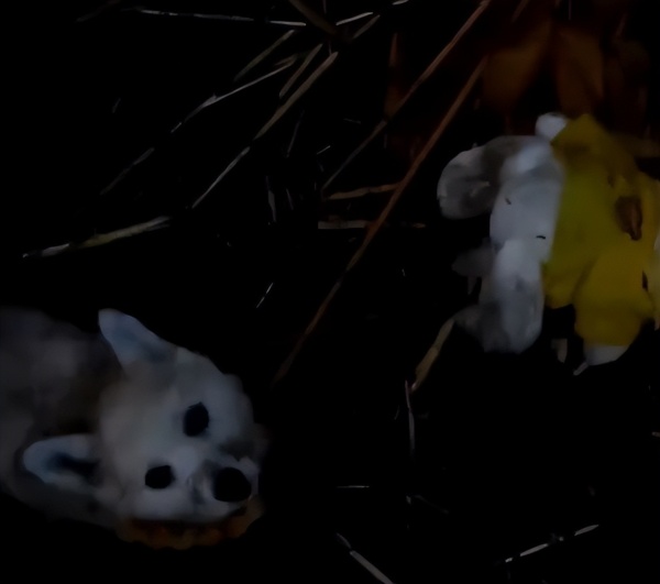 张女士于是跟着流浪小狗走,又被它领到了和玩具熊依偎的地方,小狗还叼着玩具熊示意让张女士带走。