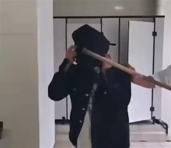 视频显示,有女生叫来一名男老师称,有男生在厕所里。老师敲门想叫男生出来,并喊道:“你出来吧,我都看到你了!”一名男生在厕所里探头,后又蒙着脸从厕所走出,被老师当场抓住。