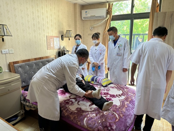 易欣(左二)和同事在给病人护理。图/受访者提供