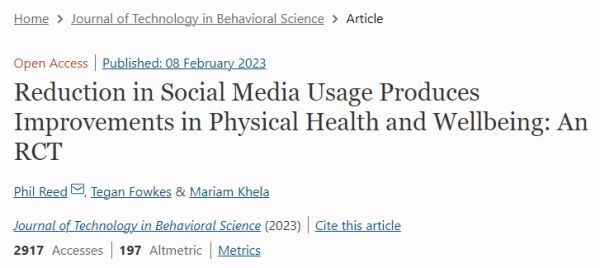 斯旺西大学心理学院的菲尔·里德教授表示,这些数据表明,当人们减少社交媒体的使用时间,生活可以在很多方面得到改善,包括身体健康和心理健康。