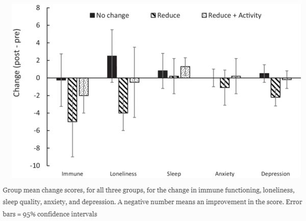 研究者发现,“减少组”参与者在免疫功能、睡眠和抑郁方面表现出更大程度的改善。具体来说,其免疫功能平均提高了15%,睡眠质量提高了50%,抑郁症状减少了30%。