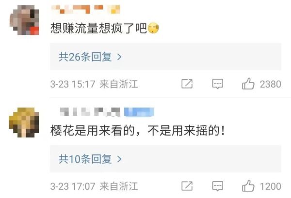 导读:3月22日,浙江杭州,有多位网友发视频爆料称,某网红团队打卡信义坊百年樱花树,拍摄期间疯狂摇晃樱花树导致大量花瓣掉落。