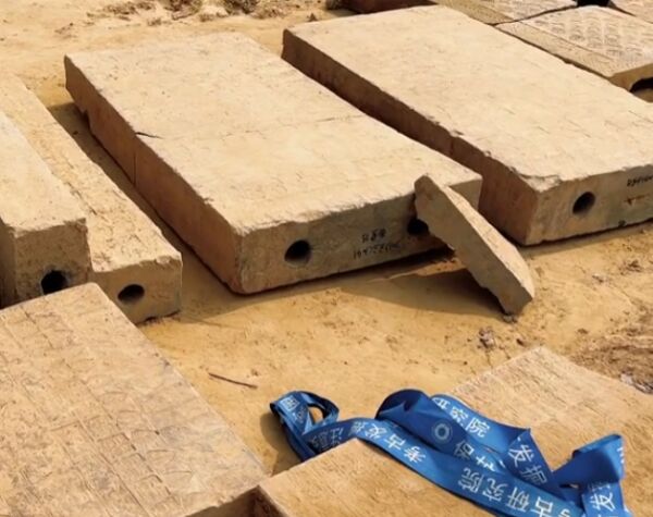 橙柿互动注意到,现场视频显示,这次从水库古墓中发现的大量墓砖个头巨大,多为空心砖,长度达到一米左右。