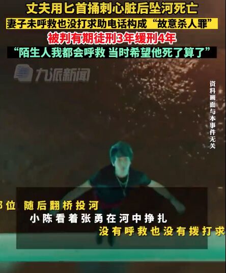 2022年7月的一天晚上,江苏海安一男子张勇因怀疑妻子小陈与他人存在不正当男女关系,且可能患病而情绪失控,欲用匕首自杀。随即他提出共同投河自尽的想法,小陈应允。后来他们在一座大桥的中间停下,张勇掏出匕首捅刺自己的心脏部位,随后翻越大桥投河。