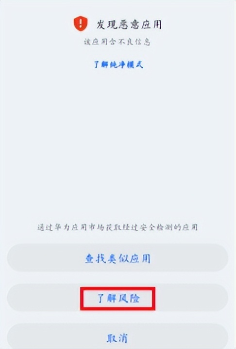 3,如果提示“发现恶意软件”的提示拦截安装,点击“了解风险”按钮,即可继续安装。