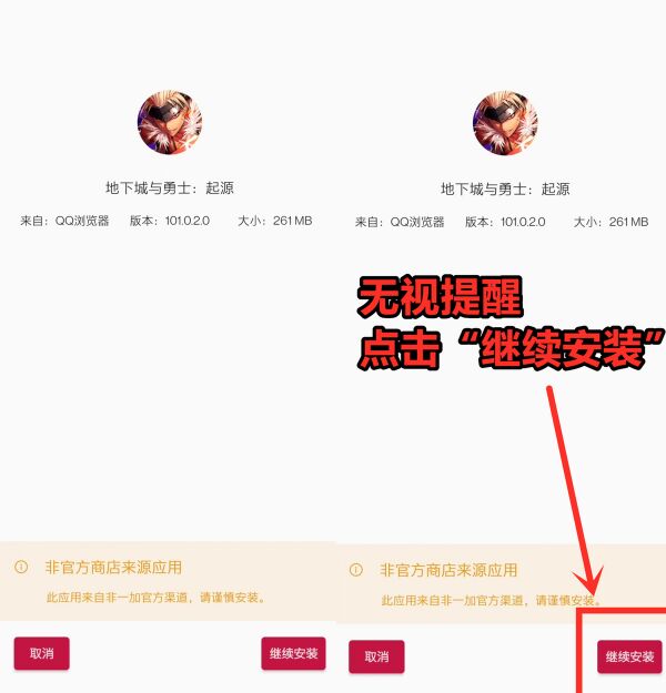 通过其他应用(如DNF官网)下载的安装包,需要重新返回下载页面,再次点击安装。