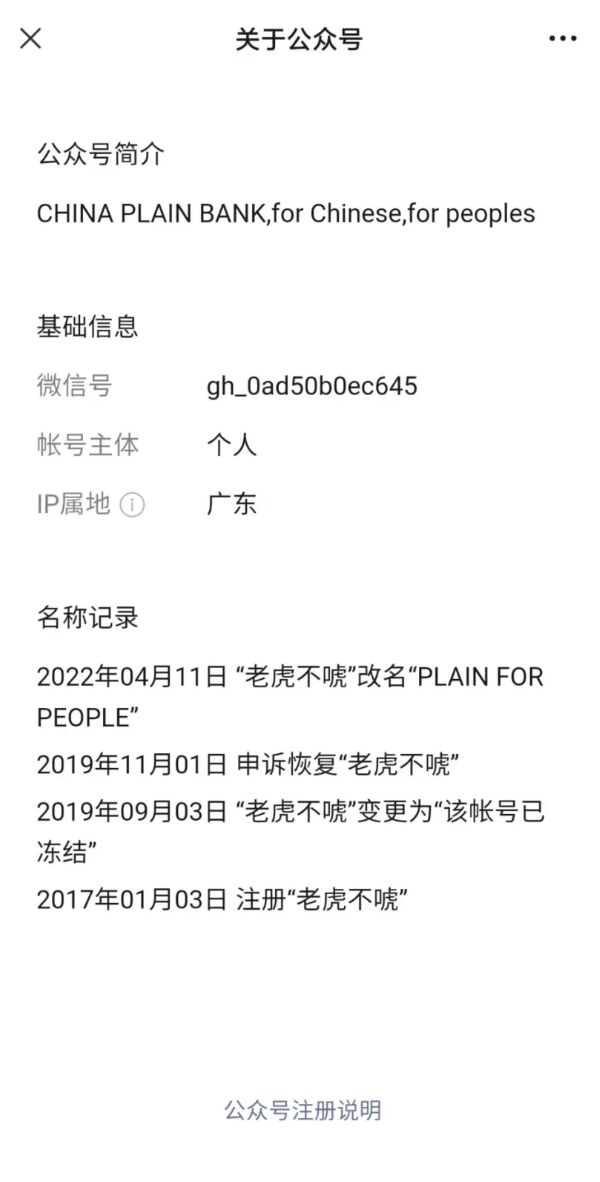 基金君在其“官方微信公众号”上发现,账号注册主体为个人,名称为“老虎不唬”。在其所谓的“筹备其”时,账号主体以个人身份发布了相关征信维权的内容。在自称的“汇报期”中,则开始以“银行”身份,发布邀请汇丰银行入股、华为云成为中国平原银行服务器合作伙伴等内容。