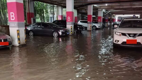 从深圳市民拍摄的视频来看,很多的地下车库均被淹了,积水非常夸张,即便是小区之内,稍微地势低洼的地区,积水更是没过脚踝。