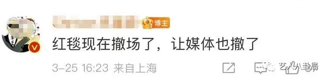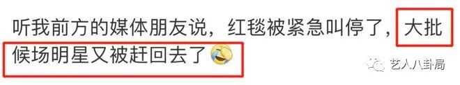 现场媒体发来前线报道:红毯被叫停了,现场在撤场,媒体也撤走了。看来红毯取消已经成了板上钉钉的事了。