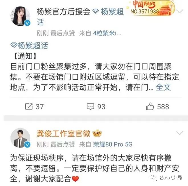 各家明星工作室应该是得到了消息,开始发公告劝自家粉丝撤离现场,注意安全。