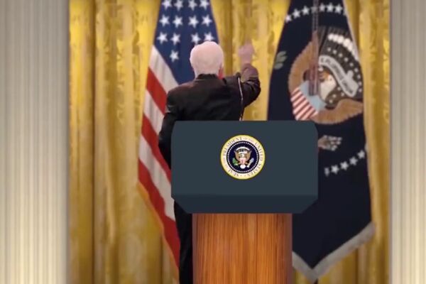《纽约邮报》描述称,在沙特媒体播出的上述短片中,一名扮演拜登的演员在白宫讲台上结束演讲后,先是向台下人员挥手致意,接着向右转伸出右手摆出疑似握手的动作,但视频中他对面没有人;随后他向演讲台后面的美国国旗挥手致意;紧接着他又向右转,向前走了几步并伸出右手,结果发现没人跟自己握手。就在这时,一名扮演哈里斯的演员出镜示意“拜登”来自己身边,并与其握手。