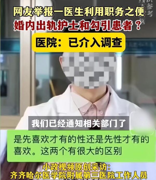 黑龙江一医生被指出轨护士勾引患者