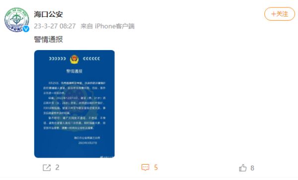 今早,@海口公安 发布警情通报,去年12月,一男子酒后殴打并强奸前女友,同时录制视频。事发后,女子因害怕未及时报案。事发3个多月后,该男子被依法刑拘。