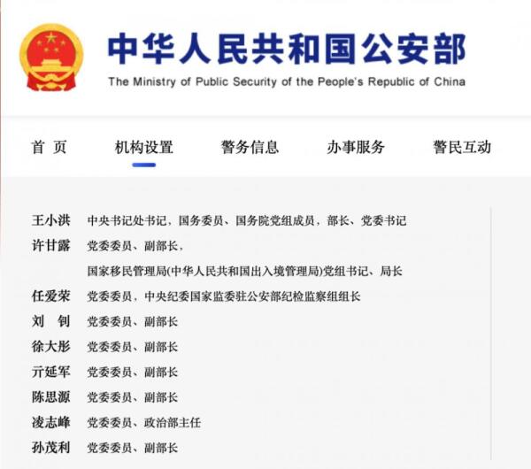 政知见微信公众号消息,据公安部官网“机构设置”栏目显示,徐大彤已经出任公安部党委委员、副部长。凌志峰已经出任公安部党委委员、政治部主任。