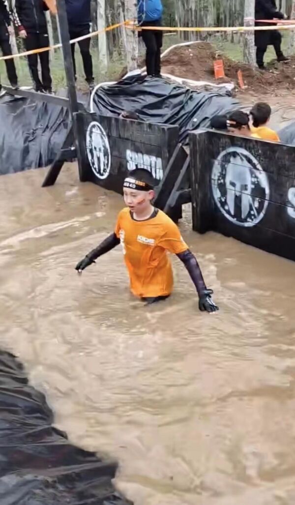 胡军的儿子,14岁的胡皓康身高超过了一米八,体型魁梧壮硕,比爸爸看起来还有男子汉气概。