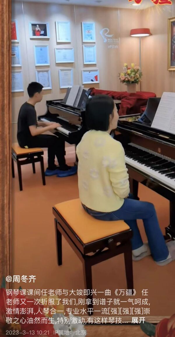 曝光的视频中,林大竣正在上钢琴课,课间他与老师即兴弹奏了一曲《万疆》。