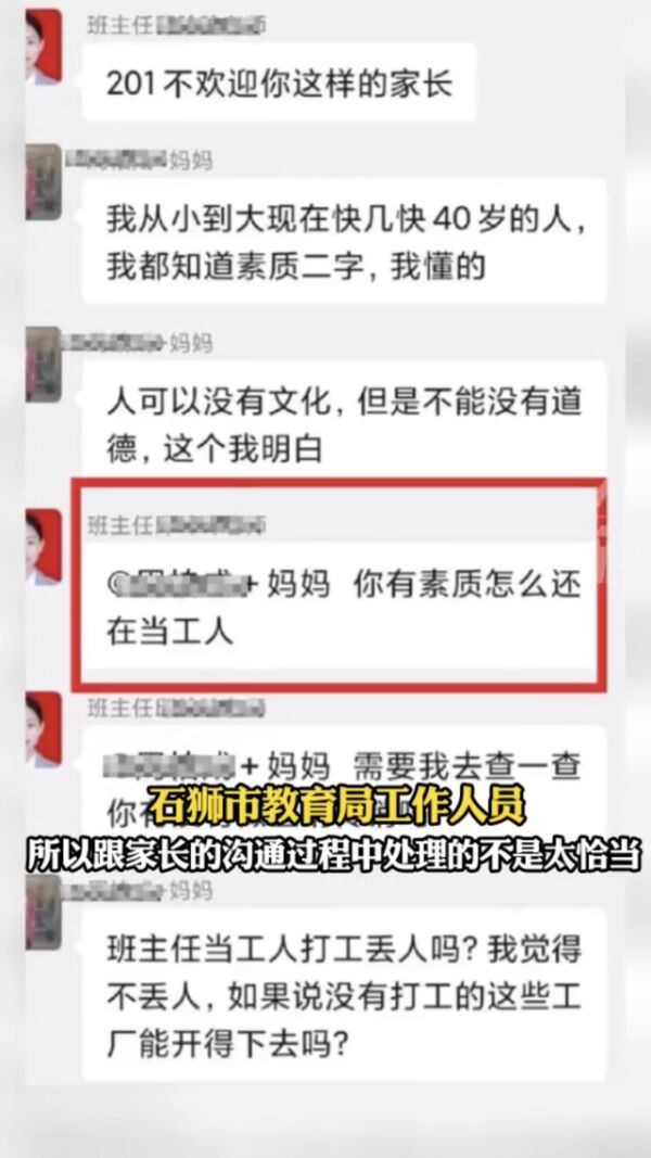 近日在福建省泉州市,一位班主任和学生家长在班级的微信群里起了争执,整个聊天过程被其他家长曝光到了网络上。从聊天记录当中可以看出家长虽然只是一名普通的工人,但在言语中充满了克制,还保持了对班主任的尊敬,而反观这位班主任却是言语相逼,丝毫不留情面。