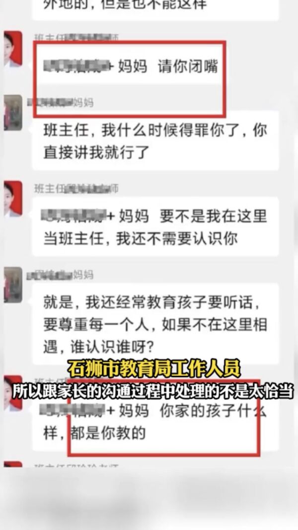 班主任和妈妈在群里起了争执之后,没有其他的家长插话,但是事后却有家长将该聊天记录发到了网络上,引起了网友们的高度关注。同时当地教育局也看到了该段视频,立即对事件展开了调查。