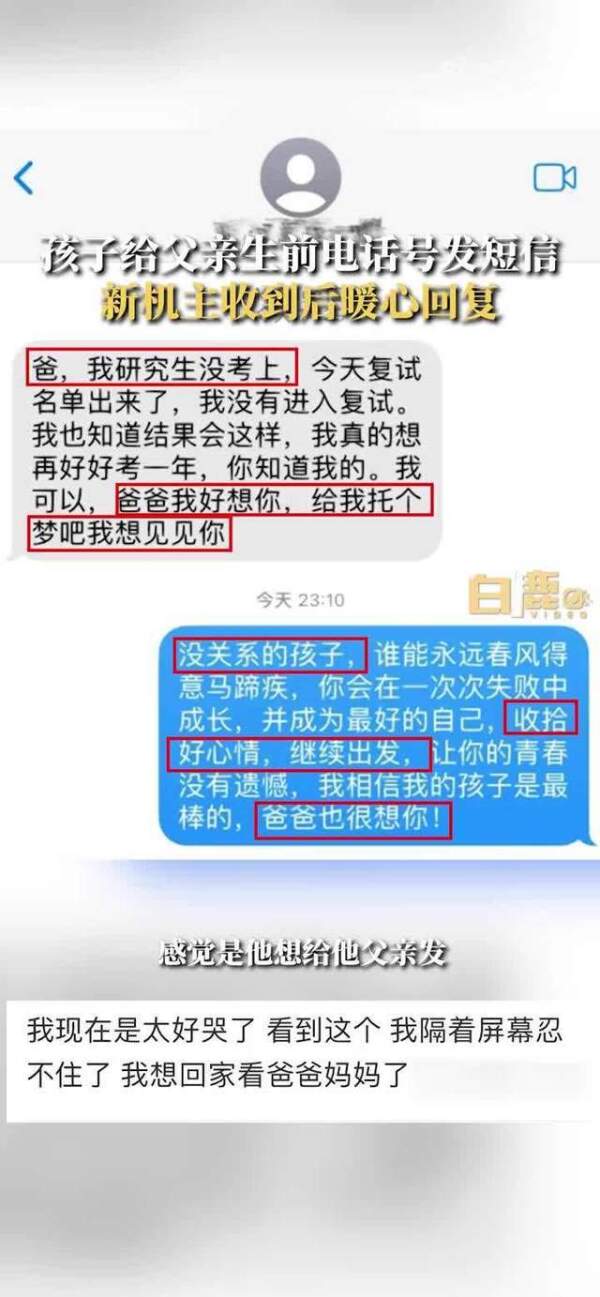 导读:3月26日,陕西西安,孩子给父亲生前手机号发短信,新机主以其父亲的名义暖心回复,鼓励他收拾好心情,重新出发。收到短信后,对面的孩子称自己泪目了。