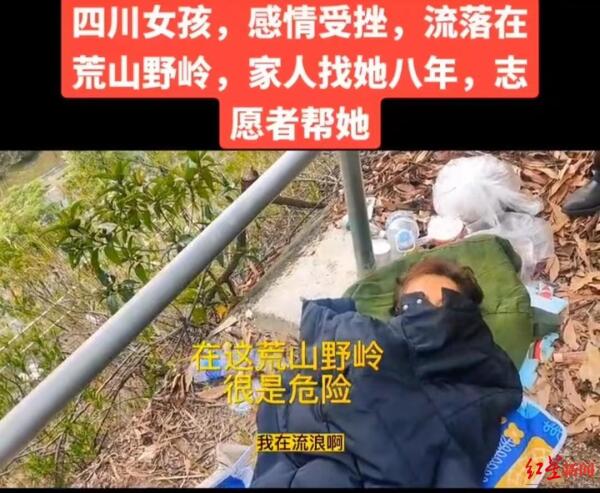 近日,一段题为“四川女孩,感情受挫,流落在荒山野岭,家人找她八年,志愿者帮她”的视频在网上流传。
