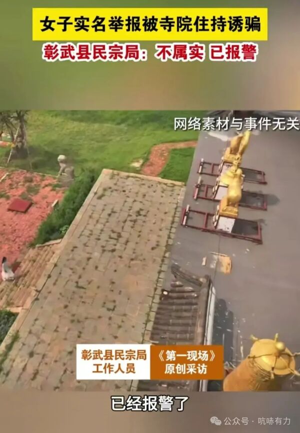 有记者针对此事联系了彰武县民宗局,一名工作人员给出了这样的答复:女子完全是胡说八道,为了流浪没有下限,现在寺庙已经报警了。