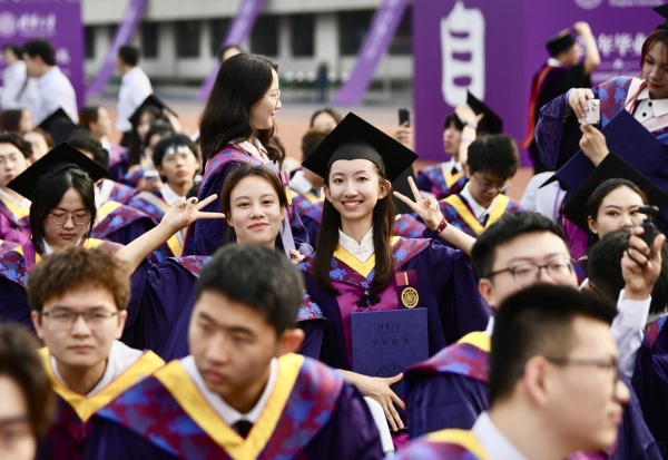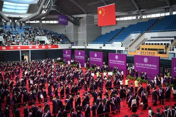 和赵女士一样,很多毕业生亲友也来到了典礼现场。清华还在新清华学堂等地设置了分直播现场,邀请亲友观看毕业生拨穗礼。