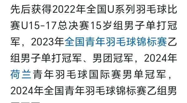 张志杰出生于2007年,自幼在浙江嘉兴成长,从幼儿园开始就展现出对羽毛球的热爱与天赋。