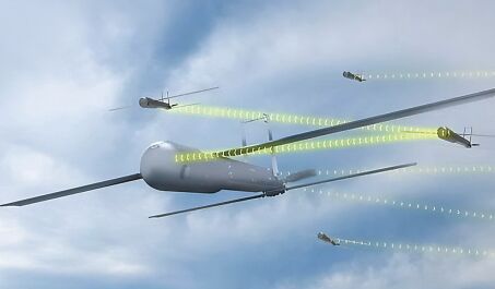 但激光武器的作战模式限制了它每次只能对付一架无人机,面对成百上千架蜂群无人机时,单靠激光武器显然不够用。专家认为,为应对蜂群无人机,目前比较可行的思路是利用高功率微波系统进行“面杀伤”。不久前,美国陆军在新墨西哥州的科特兰空军基地展示研发中的“战术高功率作战响应器”(THOR)。它属于安装在地面基地的高能微波定向能武器,专门破坏无人机的电子设备,可安装在普通集装箱中,方便地空运到全球各地的美军基地。美国陆军发布的演示视频显示,一群以紧密编队飞行的无人机正试图袭击偏远沙漠哨所的美军基地,但该基地的THOR系统将发射方向对准无人机群后,整个无人机群就同时失去动力坠落。美国洛克希德·马丁公司则设想将微波武器“搬上天”,因为地面微波武器的发射距离较远,需要损耗更多能量和更大的发射功率。而配有高功率微波设备的无人机可以主动迎击蜂群无人机,不但对微波武器的功率要求没那么高,而且还可以在“蜂群”散开前发起多轮攻击,尽可能地击落来袭者。