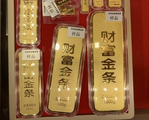 “三年前,我有个客户,就是旁边的拆迁户,还是很有想法的,趁金价相低位的时候,囤了点黄金。他进店的时候,你第一眼绝对没想到他要买这么多黄金。他就是大街上最普通的穿着打扮,但是他开口说要买8公斤黄金。”胡先生告诉记者,这位客户,当场就付了30%的订金——100万元。胡先生连夜备好货,第二天就给客户准备好8公斤黄金。这8公斤黄金,分成了100克、300克、500克等不同规格的金条。