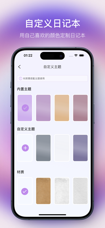 「主题材质」支持设置 30 种材质,满足您的个性化需求。