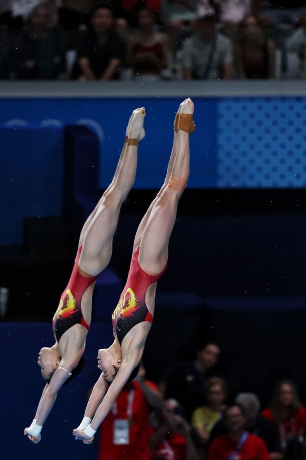 在与法兰西体育场相邻的水上运动中心,当全红婵/陈芋汐走到跳台上时,全场都会安静下来,大家更像在看一场表演赛,只有对竞技之美的欣赏。这是一场从一开始就只有亚军、季军存在悬念的比赛。从第一跳开始,全红婵/陈芋汐就展现出巨大的优势。