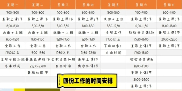 我周六早上有3节课,下午2节,晚上3节,都是对外汉语。然后还有3节语文课,差不多要上11个半小时。周日会轻松一点,大概八九节课。