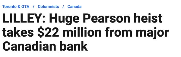 据悉,由于担心影响调查,警方并未透露搭载集装箱的航空公司名字以及飞机的始发地。不过有加拿大媒体透露称,根据一份机密备忘录显示,涉事航空公司是加拿大航空(Air Canada),遭受损失的是TD(多伦多道明银行)。该媒体还透露称,一开始消息人士称,被盗黄金重约3600磅,价值超过1.4亿加元。不过后来警方又表示,被盗金额超过2000万加元,这说明盗匪可能并未偷走全部的物品。