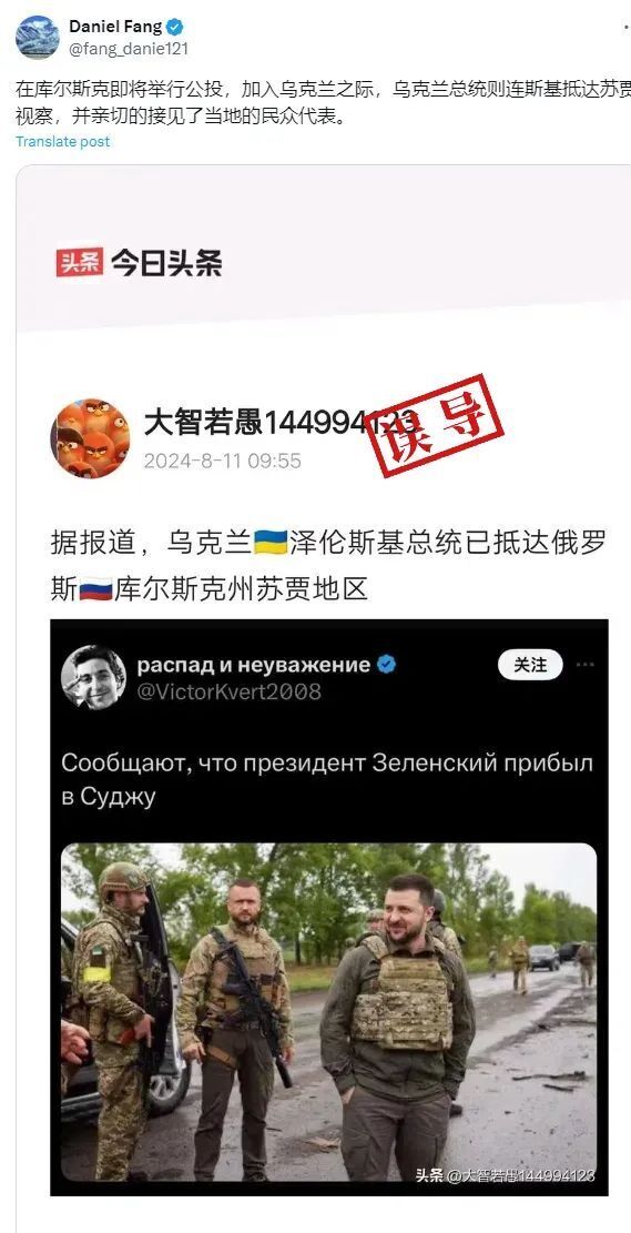 至于网传“泽连斯基前往苏贾视察”的图片,反搜发现,此图在2022年就已经出现。2022年5月29日,BBC在报道“泽连斯基罕见地出现在了基辅以外的地区”这一消息时使用了这一图片。据报道,此图显示了泽连斯基在访问位于乌克兰哈尔科夫州前线的军事基地时的画面。仅从图片出现的时间便可判断,相关图片不能作为“泽连斯基前往苏贾”的证据。