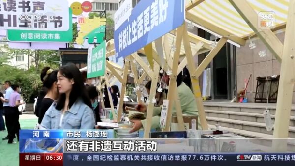 河南省新华书店最美读书声项目负责人 曹银娜:我们推出了这样的创意阅读市集,现场除了有众多精品读书之外,还融合了多元的文化元素,像图书、文创、非遗、手工以及众多的体验活动。还设置有名家分享文化沙龙,希望通过这样的方式能够给读者带来精彩的文化盛宴。