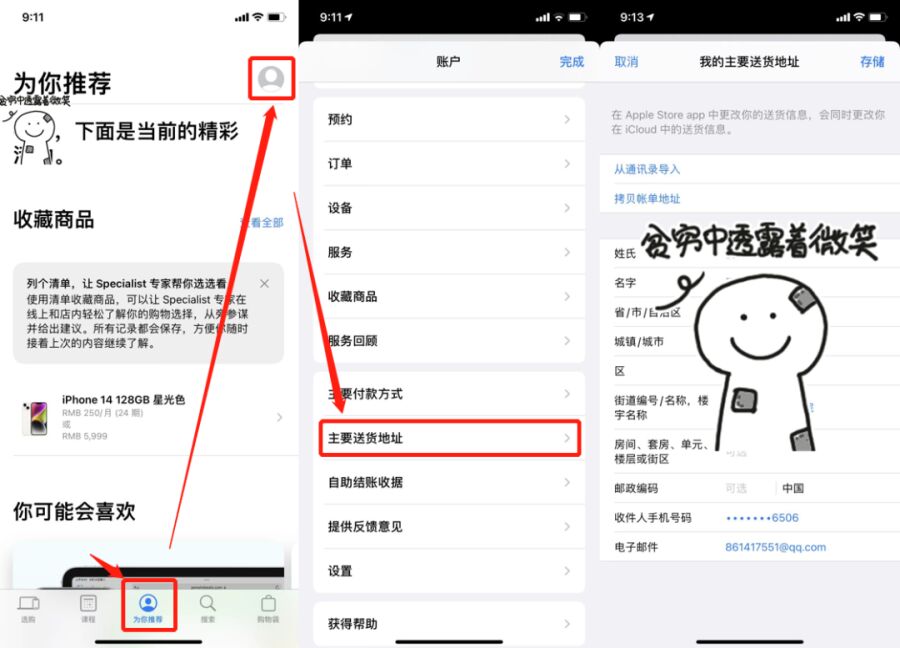 第一次使用Apple Store的用户还不知道怎么提前填写好地址,这里告诉大家,首先点开APP底部为你推荐,然后点击右上角的头像,再下滑找到主要送货地址,然后填写好你的收货地址即可,不要等到你下单的时候填写地址,肯定来不及~