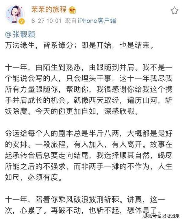 张靓颖前经纪人曾经发的告别文