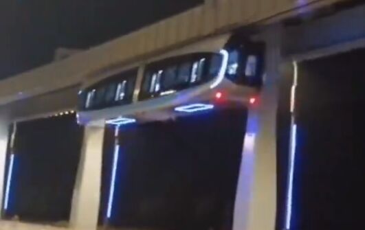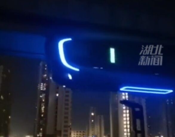 从视频来看,夜晚下的空轨列车配上车身蓝色灯效,还真有种赛博朋克的味道。