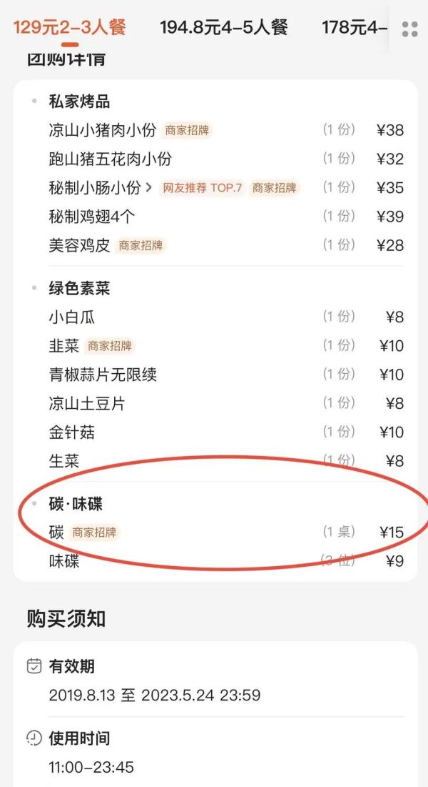 针对店员所说的“明码标价”,宋女士表示,团购套餐里有注明“碳15元/桌”,在店内,点菜菜单上,也写明了这项收费,“我们也不知道有什么问题。”