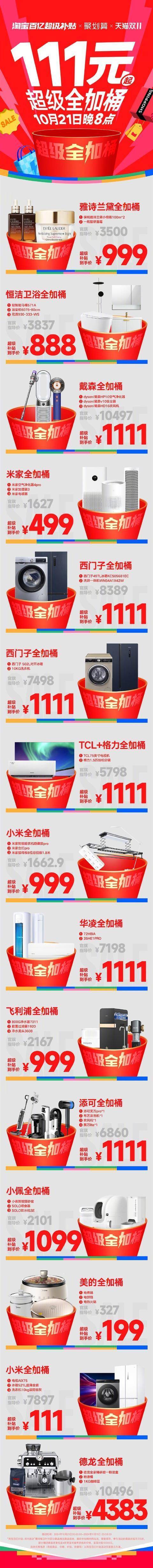 淘宝百亿补贴活动于10月21日正式启动,将持续至11月11日。活动期间,每日将推出特定的商品组合,以全家桶的形式进行抢购。这些全家桶包含了戴森、小米、西门子等知名品牌的产品,价格低至111元起。