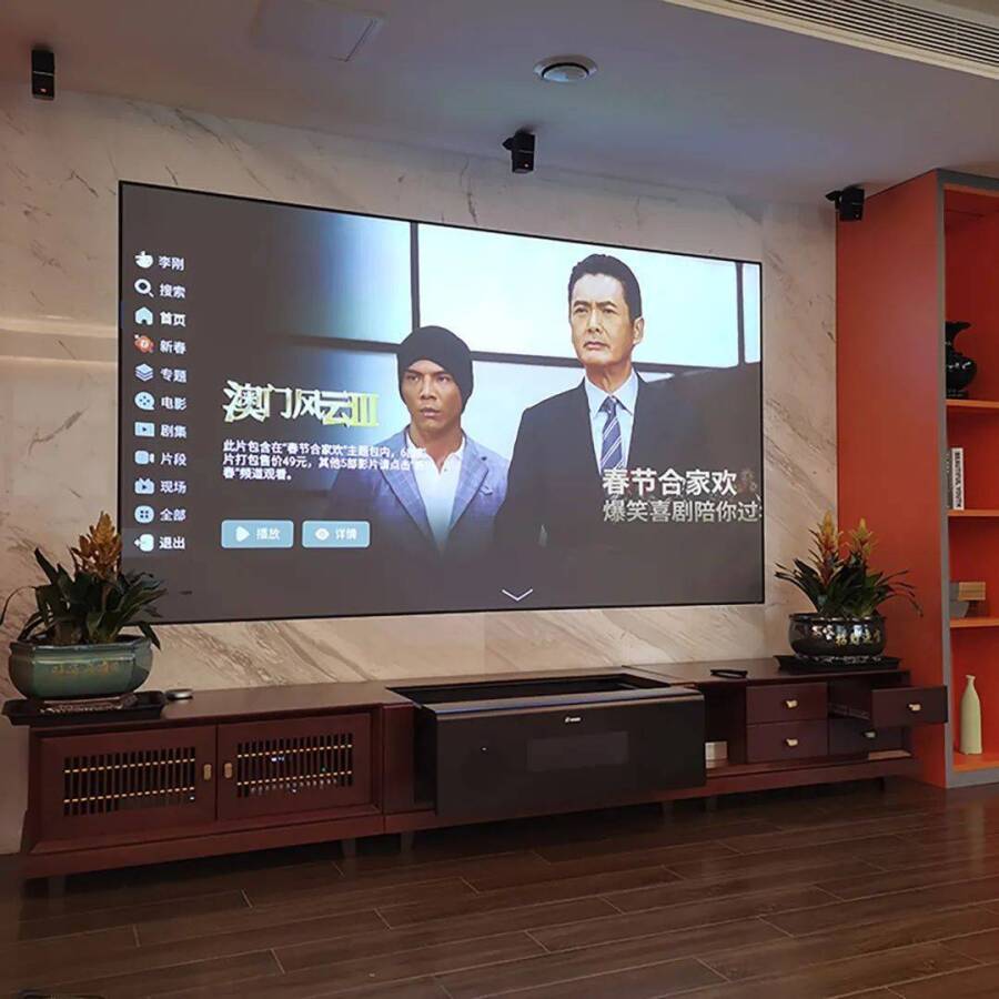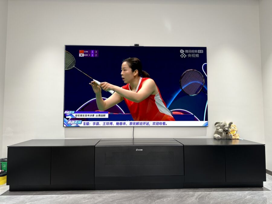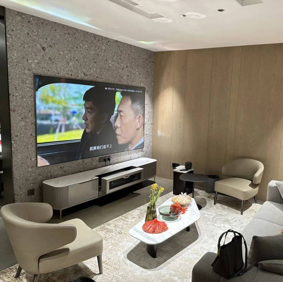 所以,有着众多优势的激光电视成为很多家庭升级换代家里的电视产品的优选。搭配凝汐智能机柜,一键就能开关机,操作简单,更适合父母使用。