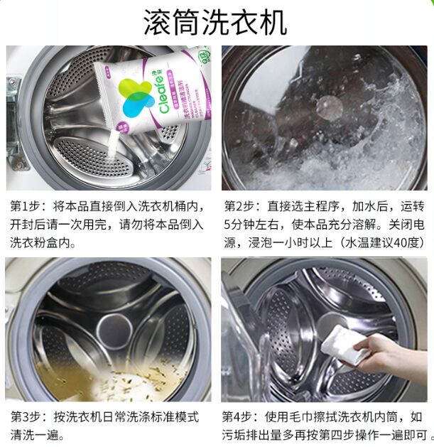 洗衣机清洗剂是一种高效、专业的洗衣机槽清洁剂,适用于滚筒和波轮式洗衣机。它能够彻底清除洗衣机内部的污垢、细菌和螨虫,有效预防皮肤病和过敏症状。这款清洗剂的除垢效果非常好,能够清除洗衣机内部的污垢、水垢和沉淀物,让洗衣机焕然一新。此外,它还具有除菌除螨的功效,能够杀灭洗衣机内部的细菌和螨虫,有效预防过敏和呼吸道疾病。