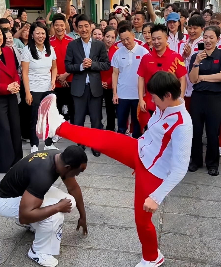当然,看过这段视频的粉丝一定记得,全红婵也用自己的大腿跨过了这个黑人舞者的头部,并且全场也是满面笑容,并没有任何情绪上的不舒服。