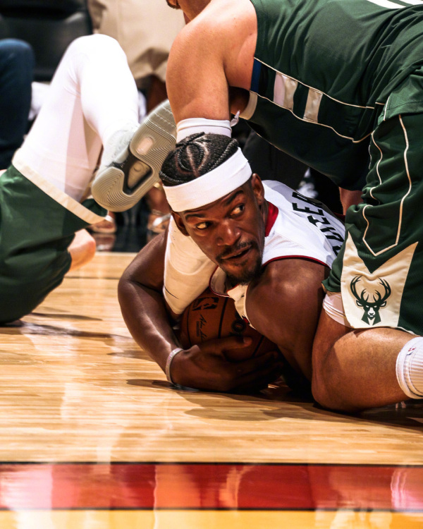 末节过半雄鹿队突然断电,热火趁机打出了一波13-0的攻击波,3分17秒巴特勒暴扣命中,热火102-101反超雄鹿1分。暂停回来字母哥打成2+1,雄鹿重新领先。巴特勒关键时刻连得5分,热火在58.2秒时112-109领先3分打停雄鹿。暂停回来巴特勒和阿德巴约4次罚球命中,116-109热火领先7分。洛佩斯三分帮助雄鹿追到114-118,巴特勒两罚一中,雄鹿最后一攻不进,热火119-114险胜。
