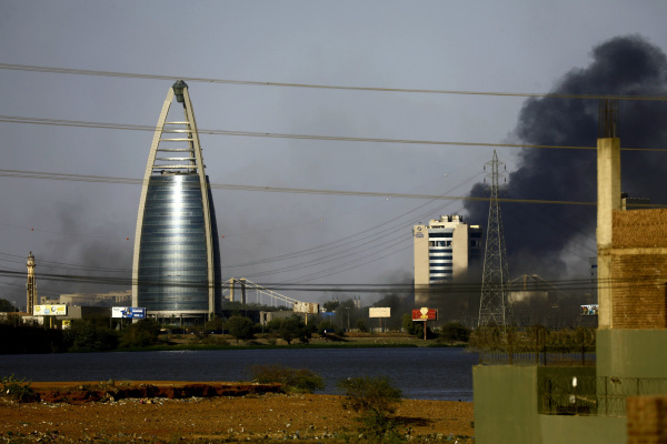 4月15日,苏丹首都喀土穆冒出浓烟。新华社发(穆罕默德·海德尔摄)
