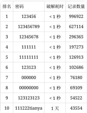 IT之家援引该报告内容,我国共计发现 996992 个“123456”密码,位列榜首,攻击者可以在 1 秒内破解: