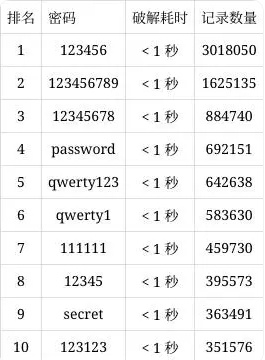 IT之家援引该报告内容,在全球范围内,共计发现 3018050 个“123456”密码,位列榜首,攻击者可以在 1 秒内破解: