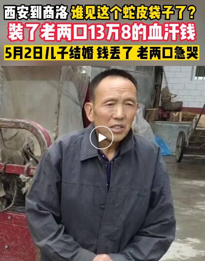 导读:4月25日,老夫妻从西安十里铺回商洛洛南老家,到家后却发现一辈子的积蓄13.8万元不见了。余老先生称这是给儿子办婚礼的钱。